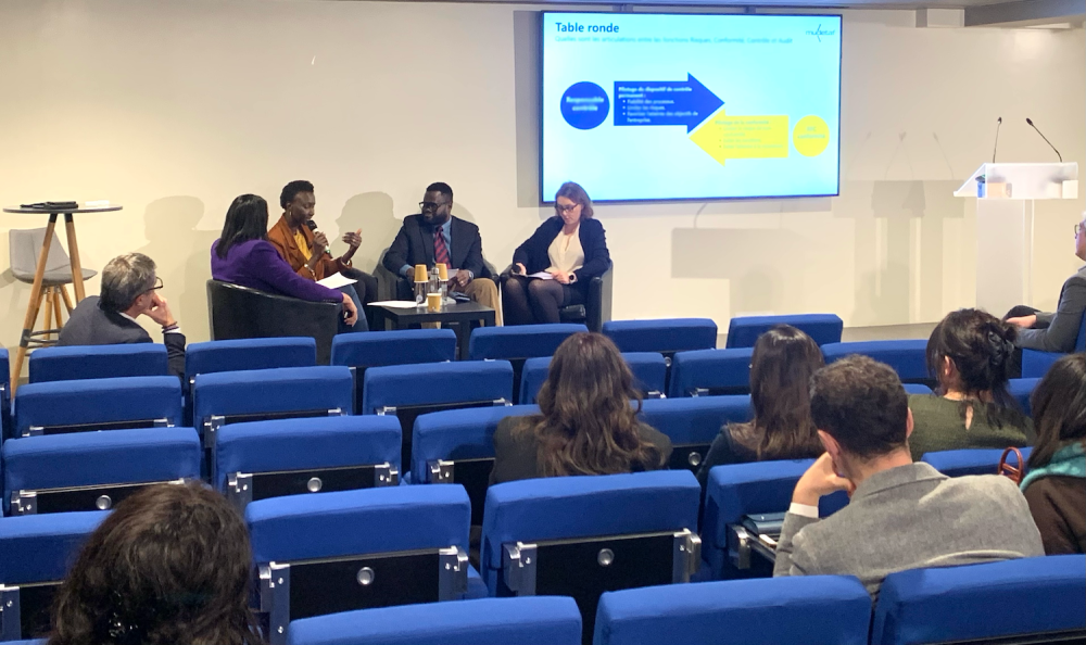 Ndeye Yacine CAMARA, responsable des activités de contrôle et RPUPA, Christelle SEKE, responsable de l'audit interne et Kwami GAFA, responsable technique et FC gestion des risques (en photo ci-contre), ont pu apporter leurs éclairages auprès des collaborateurs de la Mudetaf. Merci à Isabel YBERT, responsable indemnisation, qui a animé cette discussion avec brio !