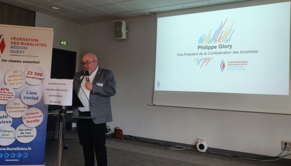 L'Assemblée Générale des buralistes des Deux-Sèvres s'est tenue le 24 mars 2024, sur invitation de Denis HUMEAU, Président de la Fédération des buralistes du 79, en présence de Philippe GLORY, Vice-président de la Confédération des Buralistes. La Mudetaf était représentée par Laurent ROUVIO, Délégué régional.